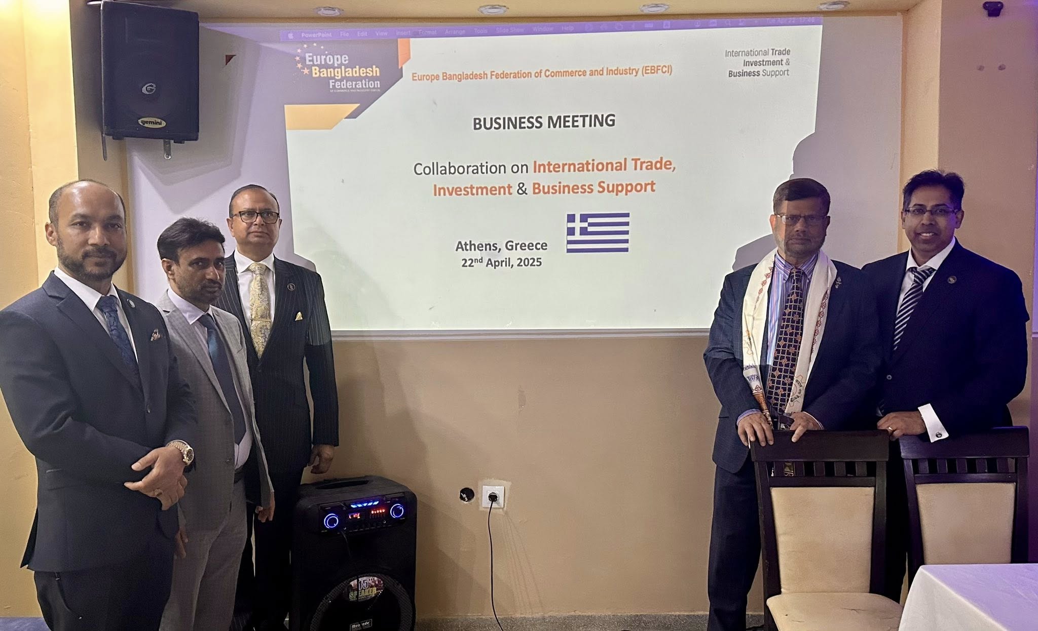 In May 2025, H.E. Michael Miller, EU Ambassador to Bangladesh, met with Dr. Wali Tasar Uddin MBE, President of EBFCI. Joined by Mr. Mohammad Ali and senior EBFCI officials, they discussed future collaborations. The Ambassador praised EBFCI’s innovative business approach and expressed strong support for joint projects and events in the European Union.
